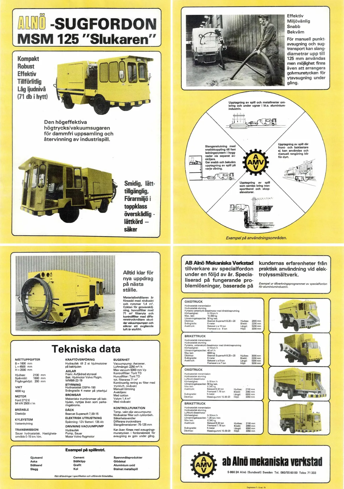 Ett unikt inslag i produktionen var tillverkningen av sugfordon, specialbyggda för industrisanering och materialhantering. Ett av dessa gick under det välkända namnet SLUKAREN – en kraftfull maskin utvecklad för att effektivt hantera damm, metallspån och restmaterial inom industriella miljöer. SLUKAREN blev uppskattad bland många industriföretag tack vare sin robusta konstruktion och höga kapacitet.